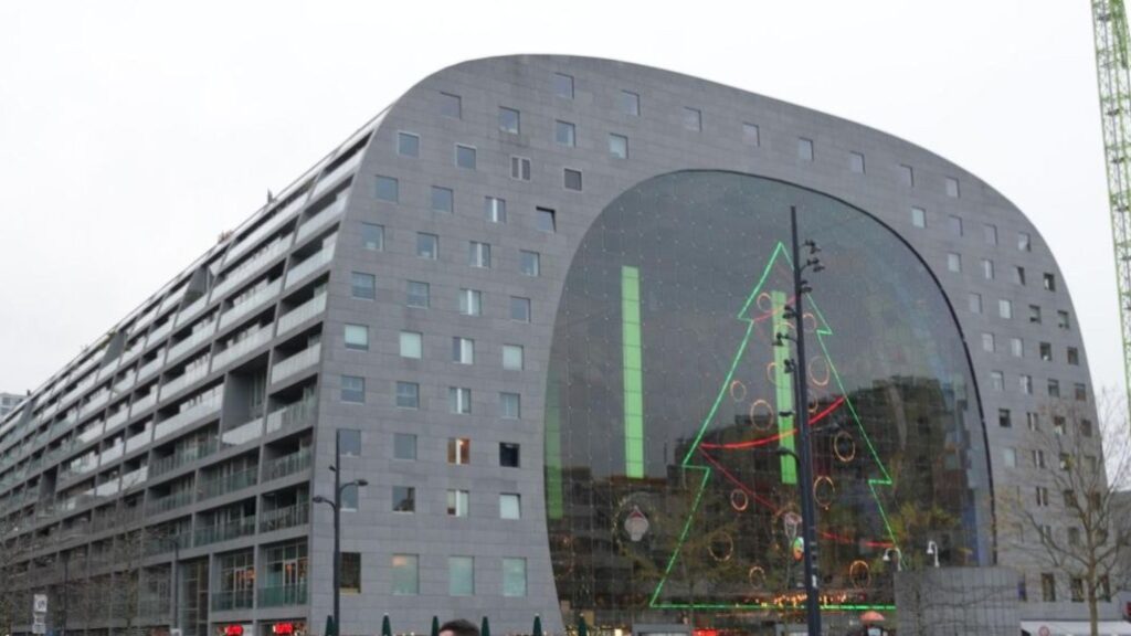 まさに「住む、食べる、楽しめる」一体型施設。私ならここに1日中いても飽きないですね。世界の美食を味わいながら、天井を見上げれば、11,000平方メートルのアートワーク『豊穣の角』に目を奪われます。色彩あふれるここマルクトハルも、ロッテルダムで最も写真に収められる名所の一つになっています。